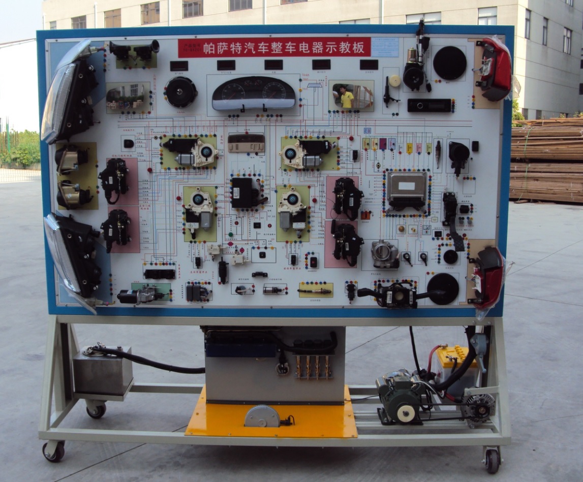 本產(chǎn)品以大眾帕薩特全車電器實(shí)物為基礎(chǔ),采用立式整體結(jié)構(gòu),所有元件安真車位置,充分展示燈光系統(tǒng)、儀表系統(tǒng)、點(diǎn)火系統(tǒng)、起動(dòng)系統(tǒng)、充電系統(tǒng)、發(fā)動(dòng)機(jī)電控系統(tǒng)、喇叭系統(tǒng)、CAN系統(tǒng)(電動(dòng)車窗系統(tǒng)、電動(dòng)門鎖系統(tǒng)、電動(dòng)后視鏡)雨刮系統(tǒng)、音響等各系統(tǒng)的組成結(jié)構(gòu)和工作過程。適用于中高等職業(yè)技術(shù)院校普通教育類學(xué)院和培訓(xùn)機(jī)構(gòu)對(duì)汽車全車電器系統(tǒng)的理論和維修實(shí)訓(xùn)的教學(xué)需要。本實(shí)訓(xùn)臺(tái)功能齊全、操作方便、安全可靠。