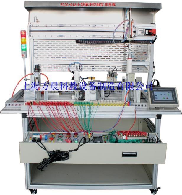 “小型循環(huán)控制實(shí)訓(xùn)系統(tǒng)”是依據(jù)機(jī)電一體化教學(xué)的要求而精心研制的。它在接近工業(yè)生產(chǎn)制造現(xiàn)場基礎(chǔ)上又針對(duì)教學(xué)及實(shí)訓(xùn)目的進(jìn)行了專門設(shè)計(jì),強(qiáng)化了機(jī)電一體化的安裝與調(diào)試能力。實(shí)訓(xùn)裝置由型材導(dǎo)軌式實(shí)訓(xùn)臺(tái)、典型機(jī)電一體化設(shè)備機(jī)械部件、PLC模塊、變頻器模塊、按鈕模塊、電源模塊、模擬生產(chǎn)設(shè)備實(shí)訓(xùn)模塊(包含上料單元、皮帶輸送檢測單元、氣動(dòng)機(jī)械手搬運(yùn)單元、物料傳送倉儲(chǔ)單元、物料返回單元)、觸摸屏、接線端子排和各種傳感器等組成。采用開放式和拆裝式結(jié)構(gòu),可根據(jù)現(xiàn)有的機(jī)械部件組裝生產(chǎn)設(shè)備,使整個(gè)裝置能夠靈活的按實(shí)訓(xùn)教學(xué)或競賽要求組裝具有生產(chǎn)功能的光機(jī)電一體化設(shè)備。模塊采用工業(yè)標(biāo)準(zhǔn)結(jié)構(gòu)及抽屜式模塊放置架,互換性強(qiáng)。