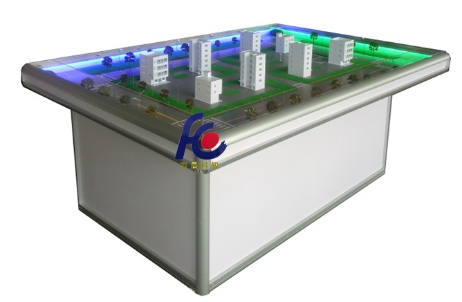 2.1城市智能實(shí)訓(xùn)系統(tǒng)沙盤面積2.0米x1.4米、 離地面高度0.7m,上面有安裝城市交通系統(tǒng),停車場(chǎng),建筑模型,路燈系統(tǒng),提示牌、大樓供電系統(tǒng)、巡邏系統(tǒng)、周界系統(tǒng)、監(jiān)控系統(tǒng)等,路面上鋪設(shè)車輛導(dǎo)航色帶和RFID標(biāo)簽。城市交通系統(tǒng)由行車道、交通燈、交通指示牌、提示牌、信息顯示屏等組成;停車場(chǎng)由入出口道閘、停車區(qū)、車輛信息顯示屏等組成;建筑模型包括樓宇、廠房、路燈、公共綠地等模型。