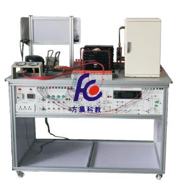 2、 系統(tǒng)由兩部分組成,分別為:分體式熱泵空調(diào)和直冷電冰箱,分體空調(diào)可進行制冷、制熱、除濕、自動工作模式功能,直冷式電冰箱可進行冷藏、冷凍等功能,涵蓋了制冷專業(yè)中所涉及的安裝、管路設計焊接技術(shù)、接線、保壓、檢漏、抽真空、充注制冷劑、制冷劑回收、運行調(diào)試,控制電路故障考核等